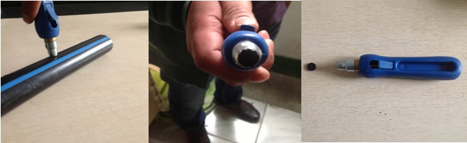 2. 大拇指推动打孔器推柄,将PE管管壁推出。