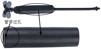 2. 将微喷管一端穿过配重即可。