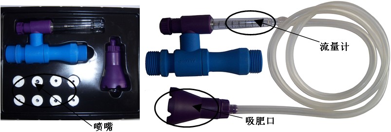产品介绍:可调式文丘里施肥器克服了传统型文丘里施肥器注肥浓度不均、 无法调节肥液流量,及设备运行工作压力要求范围过大等缺点,采用独特设计,完善地配有流量控制阀、可更换的不同内径喷嘴、旋子流量计等部件,彻底打破现有施肥装置的无计量缺陷,使施肥过程更加均匀化、计量化,方便广大用户更加便捷、自动化地控制其灌溉系统。