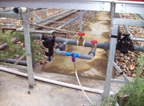 文丘里施肥器需要与灌溉系统供水管路控制阀并联使用,使用时将控制阀门关小,造成控制阀门前后有一定的压差,使水流经过安装文丘里施肥器的支管,利用水流通过文丘里管产生的真空吸力,将肥料溶液从敞口的肥料桶中均匀吸入管道系统进行施肥。